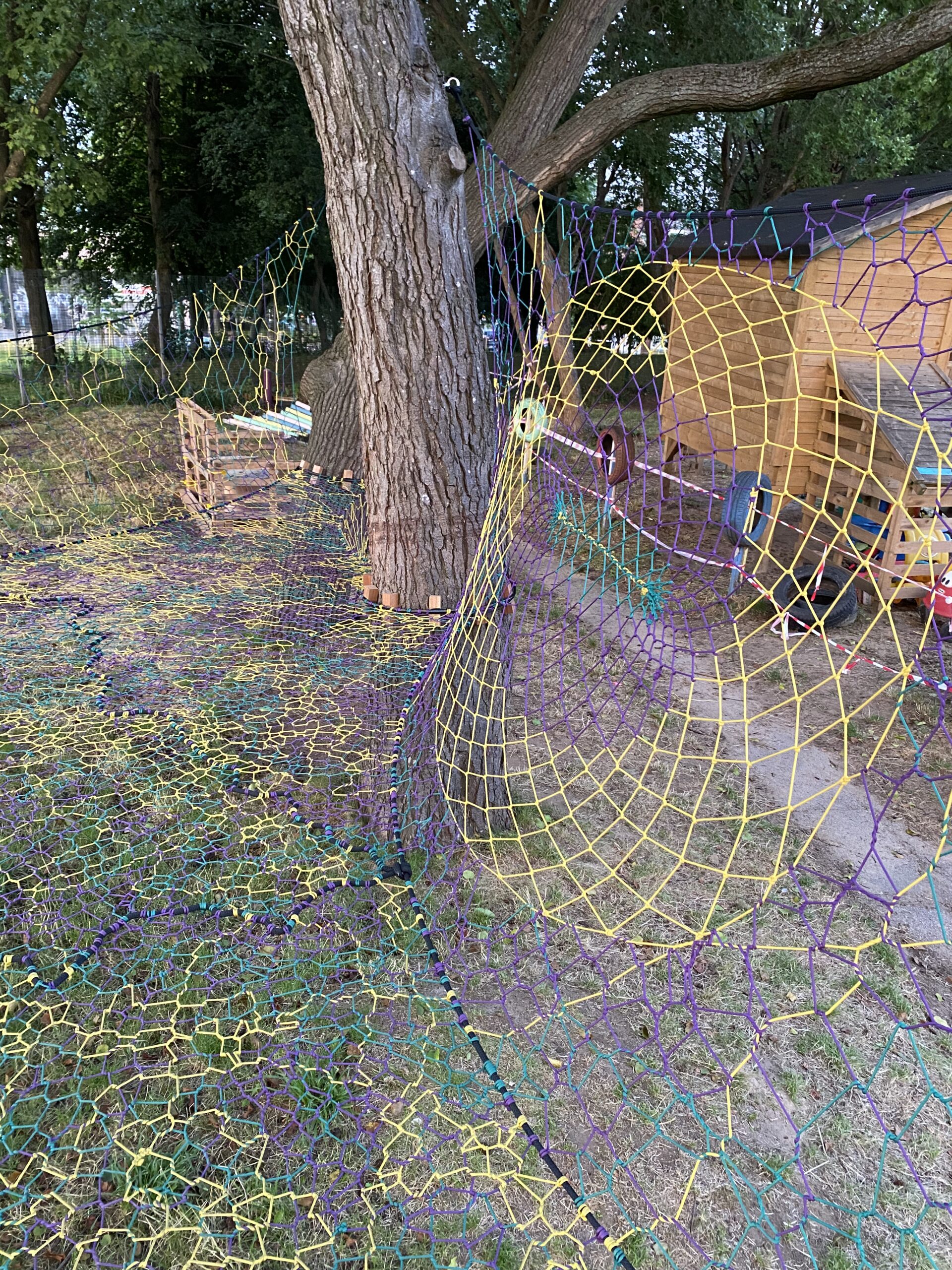 We install high-quality, hand-woven suspended nets used for relaxing, playing or social spaces. Available as permanent or portable structures.